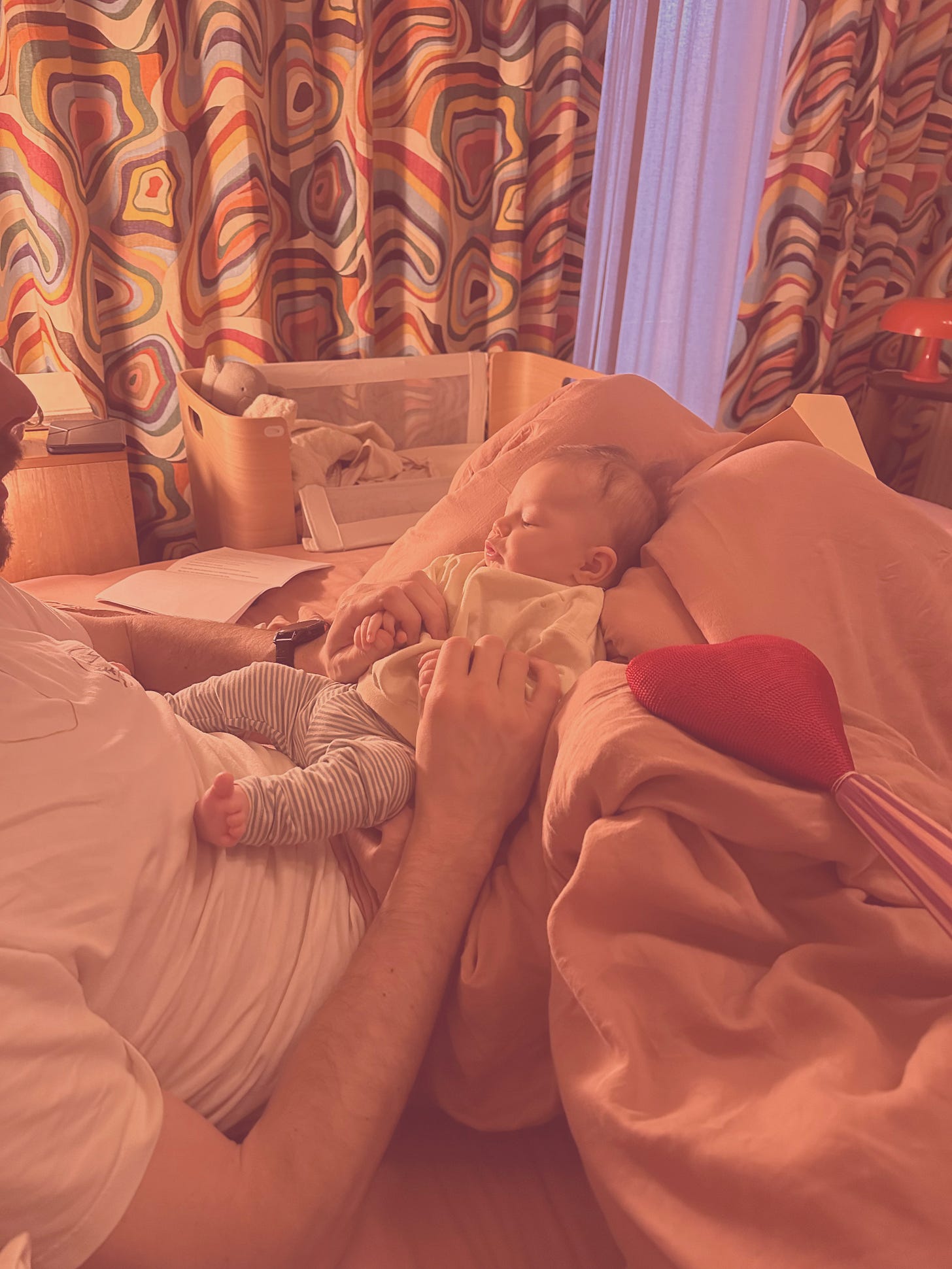 Of de zorgzame man sneller naast de co-sleeper kruipt, of dat de co-sleeper hem zorgzamer maakt - ik denk dat het vooral een opwaartse spiraal is. Want dat zorgen een vaardigheid is die je moet oefenen, en beter wordt naarmate je het vaker doet, is een voldongen feit.